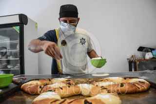 PUERTO MORELOS, QUINTANA ROO, 04ENERO2021.- Lázaro Maldonado y su familia llevan 25 años haciendo las tradicionales rosca de reyes, son originarios de Oaxaca. Desde hace 4 años llegaron a este destino turístico y se dedican a la venta de pan. FOTO: ELIZABETH RUIZ/CUARTOSCURO.COM