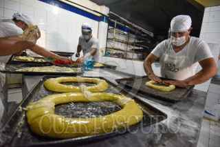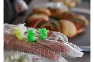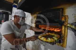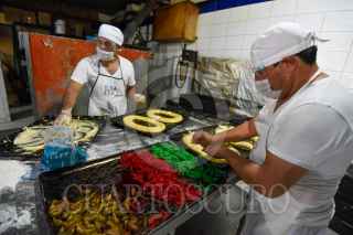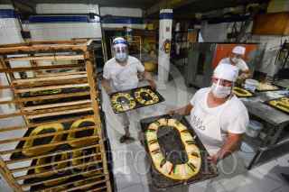 TOLUCA, ESTADO DE MÉXICO, 04ENERO2021.- La Panificadora Azul, ubicada a espaldas del Mercado Morelos en Toluca, lleva más de 45 años elaborando pan tradicional, entre ellos la Rosca de Reyes pan para celebrar el 6 de enero, en esta ocasión decidieron no solo tener los tradicionales muñecos de la rosca y agregaron q sus roscas a baby Yoda o Grogu como una forma de complacer a sus clientes que son fanáticos de la saga de Star Wars, los precios de las roscas van desde los 150 pesos de 500 gramos, la de un kilo 300; las iniciaron a elaborar en el primer día de enero y continuarán sacando pedidos hasta el día 9 de enero, hacen un llamado a la población para que consuma lo local más en tiempos de COVID-19. FOTO: CRISANTA ESPINOSA AGUILAR /CUARTOSCURO.COM