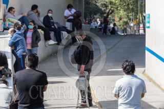 CIUDAD DE MÉXICO, 05ENERO2021.- En el Hospital de los Venados IMSS continúa recibiendo a pacientes con síntomas con Covid-19, muchos de ellos llegan en autos particulares y otros en ambulancias, pero la gran mayoría ya vienen con oxigenación artificial. Familiares esperan afuera del nosocomio en espera de informes de sus pacientes, algunos cuyos casos no son de Covid-19 se quejan de que el personal médico solo salen a dar informes de esta enfermedad. FOTO: MOISÉS PABLO/CUARTOSCURO.COM