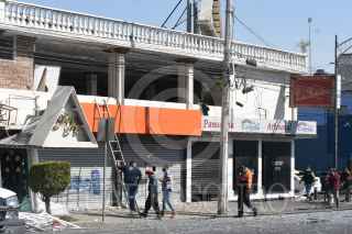 CIUDAD DE MÉXICO, 05ENERO2021.- La acumulación de gas, presuntamente por una fuga, provocó una explosión en un salón de fiestas, ubicado en Montevideo y Recife, en la colonia San Bartolo Atepehuacan, alcaldía Gustavo A. Madero. Paramédicos atendieron a tres personas por crisis nerviosa. FOTO: CRISTIAN HERNÁNDEZ/CUARTOSCURO.COM
