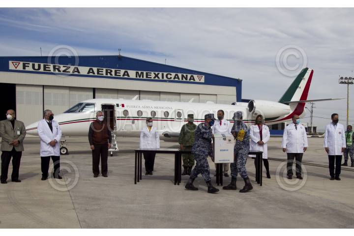 MONTERREY, NUEVO LEÓN, 06ENERO2020.- El estado de Nuevo León recibió 4 mil, 875 vacunas contra el Covid-19. La recepción se llevó a cabo en la Base Aérea Militar No. 14, por personal militar y la secretaría de salud de la entidad, posteriormente, las dosis fueron trasladadas al Hospital Privado "Oca" en el centro de Monterrey. Se continuará vacunando a personal médico en los diferentes hospitales que atienden a pacientes con Covid-19. FOTO: GABRIELA PÉREZ MONTIEL / CUARTOSCURO.COM