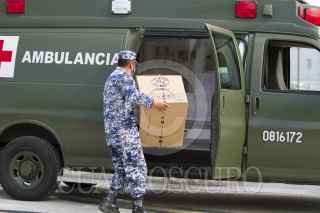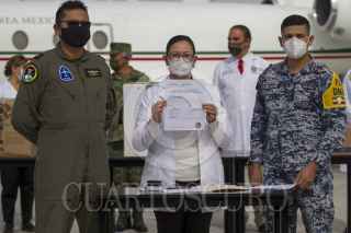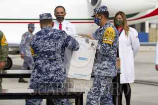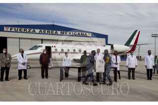 MONTERREY, NUEVO LEÓN, 06ENERO2020.- El estado de Nuevo León recibió 4 mil, 875 vacunas contra el Covid-19. La recepción se llevó a cabo en la Base Aérea Militar No. 14, por personal militar y la secretaría de salud de la entidad, posteriormente, las dosis fueron trasladadas al Hospital Privado "Oca" en el centro de Monterrey. Se continuará vacunando a personal médico en los diferentes hospitales que atienden a pacientes con Covid-19. FOTO: GABRIELA PÉREZ MONTIEL / CUARTOSCURO.COM
