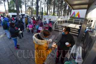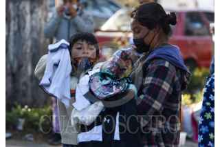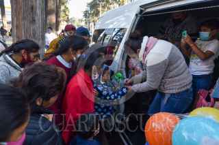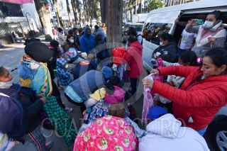 TOLUCA, ESTADO DE MÉXICO, 06ENERO2021.- Gabriela Ballesteros y su familia, originarios de Huixquilucan acudieron a las inmediaciones del Hospital para el Niño del Instituto Materno Infantil del Estado de México (IMIEM) a regalar juguetes, ropa y alimentos calientes para los niños y sus familiares que se encuentran con algún paciente internado en el nosocomio, durante 5 años ha traído ayuda a las personas que se encuentran en este lugar, ella compra juguetes y comida, la ropa son donaciones de personas que atiende. FOTO: CRISANTA ESPINOSA AGUILAR /CUARTOSCURO.COM