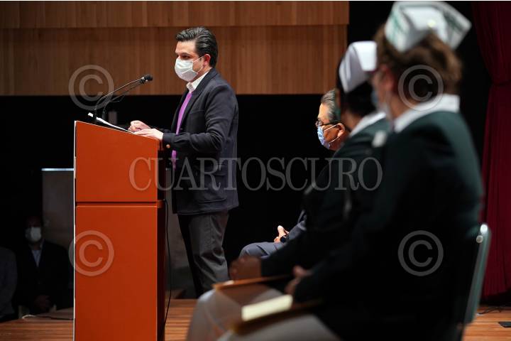 CIUDAD DE MÉXICO, 06ENERO2021.- En la lucha contra la pandemia ha sido fundamental el desempeño de enfermeras y enfermeros del Instituto Mexicano del Seguro Social (IMSS), que han ayudado a salvar vidas a través de cuidados basados en evidencias científicas, atención a las necesidades humanas, bajo principios disciplinares y éticos. Durante la ceremonia virtual para conmemorar el Día de las Enfermeras y los Enfermeros 2021, el director general del Seguro Social, Maestro Zoé Robledo, resaltó que durante las largas horas de trabajo frente a la pandemia, ellos “nunca regatearon nada y no dieron excusas o pretextos para realizar lo que les correspondía: largas y pesadas horas de trabajo para atender a enfermos”. FOTO: IMSS/CUARTOSCURO.COM