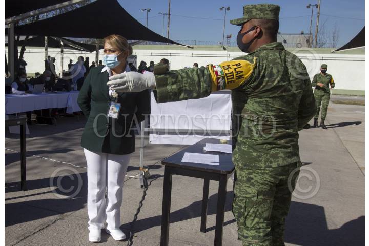 MONTERREY, NUEVO LEÓN 07ENERO2020.- La segunda aplicación de vacunas contra el Covid-19 en Nuevo León se llevó a cabo dentro de las instalaciones de el Hospital Militar de Especialidades dentro de la IV Región Militar, donde 975 dosis serán aplicadas cada día destinados a personal de salud. Se necesitan 19 mil vacunas para los empleados del sector médico en la entidad. FOTO: GABRIELA PÉREZ MONTIEL / CUARTOSCURO.COM