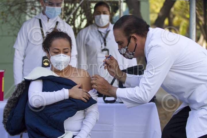 MONTERREY, NUEVO LEÓN 07ENERO2020.- La segunda aplicación de vacunas contra el Covid-19 en Nuevo León se llevó a cabo dentro de las instalaciones de el Hospital Militar de Especialidades dentro de la IV Región Militar, donde 975 dosis serán aplicadas cada día destinados a personal de salud. Se necesitan 19 mil vacunas para los empleados del sector médico en la entidad. FOTO: GABRIELA PÉREZ MONTIEL / CUARTOSCURO.COM