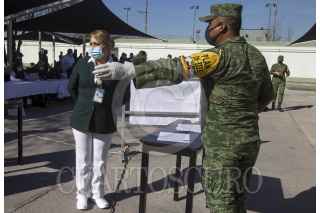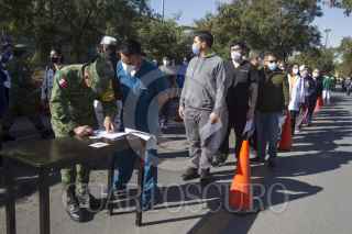 MONTERREY, NUEVO LEÓN 07ENERO2020.- La segunda aplicación de vacunas contra el Covid-19 en Nuevo León se llevó a cabo dentro de las instalaciones de el Hospital Militar de Especialidades dentro de la IV Región Militar, donde 975 dosis serán aplicadas cada día destinados a personal de salud. Se necesitan 19 mil vacunas para los empleados del sector médico en la entidad. FOTO: GABRIELA PÉREZ MONTIEL / CUARTOSCURO.COM