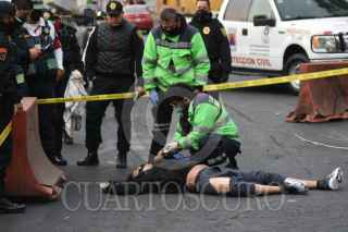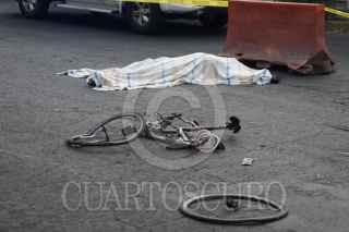 CIUDAD DE MÉXICO, 07ENERO2021.- Un hombre de aproximadamente 40 años de edad perdió la vida al ser arrollado por el conductor de un camión de pasajeros cuando circulaba en su bicicleta sobre Ferrocarril Hidalgo y San Juan de Aragon, frente al paradero del Metro Martin Carrera; el presunto responsable se dio a la fuga. FOTO: CRISTIAN HERNÁNDEZ/CUARTOSCURO.COM