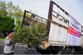 CIUDAD DE MÉXICO, 07ENERO2021.- Por parte del gobierno de la capital y la Comisión Nacional Forestal (CONAFOR), a partir de hoy y hasta el próximo 20 de enero, estarán colocados en distintos puntos de la capital centros de acopio para los pinos que fueron adquiridos por decenas de familias para adornar sus casas en esta temporada decembrina, esto con el objetivo de que sean empleados como compostaje para la plantación de más pinoz y no seas desechados o quemados en algún basurero de la ciudad. FOTO: DANIEL AUGUSTO /CUARTOSCURO.COM