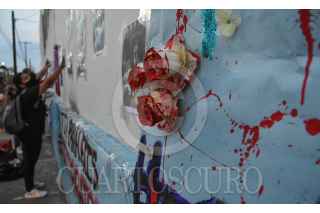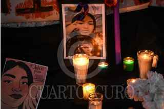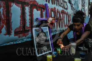 CANCÚN, QUINTANA ROO, 07ENERO2021.- Grupos feministas, amigos y familiares de Bianca Alejandrina Lorenzana "Alexis", quien salió de su casa el 7 de noviembre para vender un cigarro electrónico, cuyo cuerpo fue localizado días más tarde, colocaron un altar para exigir justicia por su feminicidio. Los inconformes pusieron velas y retratos de la joven en la Fiscalía del Estado de Quintana Roo a dos meses de los lamentables hechos. FOTO: ELIZABETH RUIZ/CUARTOSCURO.COM
