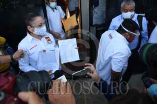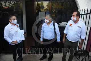 CAMPECHE, CAMPECHE, 08ENERO2021.- La coalición en Campeche entre los partidos del PT y Morena llamada "Juntos Haremos Historia", inicio con el pie izquierdo y marco un inicio fracturado entre ambos partidos. Ana María López Hernández, comisionada política nacional del Partido del Trabajo (PT) acudió junto un grupo de seguidores a presentar el registro del ParTIDO como coalición ante el Instituto Electoral del Estado de Campeche (IEEC), mientras el Partido de Morena sólo envió a Carlos Ramírez representante del Partido ante el IEEC y a Víctor Hernández Ponce quienes ignoraron a los petistas. FOTO: MICHEL BALAM /CUARTOSCURO.COM