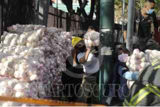 CIUDAD DE MÉXICO, 10ENERO2021.- Un trailer cargado de cebolla volcó al perder el control en una curva, sobre avenida Añil esquina con Canela de la colonia GrAnjas México, en alcaldía de Iztacalco. Bomberos y protección civil laboraron retirando la carga y poder liberar la vialidad. FOTO: LUIS CARBAYO/CUARTOSCURO.COM