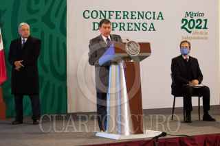 CIUDAD DE MÉXICO 11ENERO2021.- El Presidente Andrés Manuel López Obrador, en la conferencia de todas las mañanas, en salón Tesorería de Palacio Nacional. Estuvieron presentes Esteban Moctezuma, titular de la SEP y el director de Profeco, Ricardo Sheffield. FOTO: VICTORIA VALTIERRA/CUARTOSCURO.COM