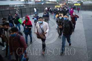 ciUDAD DE MÉXICO, 11ENERO2020.- En la terminal Indios Verdes se presentó filas de personas que buscaban como poder transportarse, esto ante el cierre de las líneas del Metro: 1, 2, 3, 4, 5, y 6. Las cuales tuvieron que cerrar debido al incendio en la subestación de la calle de Delicias del sábado pasado. Ayer por la tarde la Jefa de Gobierno informó que probablemente en 48 horas las líneas de la 4 a la 6 vuelvan a prestar servicio, mientras que los otras restantes no tienen fecha de reapertura. Hoy apenas se pudieron dar abastos el Metrobus, camiones RTP y camionetas de la policía capitalina para llevar a sus destinos a las miles de personas que buscaban como poder transportarse. Usuarios se quejaron que los camiones RTP si cobraron 5 pesos el servicio de Indios Verdes a Universidad, cuando según ellos las autoridades habían dicho que iba ser gratuito. FOTO: MOISÉS PABLO/CUARTOSCURO.COM