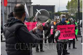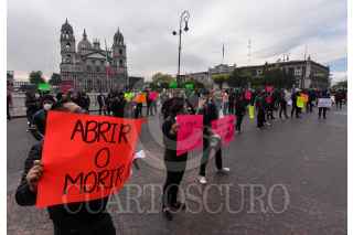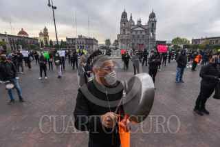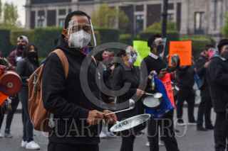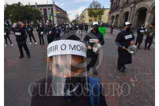 TOLUCA, ESTADO DE MÉXICO, 11ENERO2021.- Meseros, garroteros, cocineros, capitales, cantineros, trabajadores de restaurantes y empresarios realizaron un Cacelorazo #AbrirOmorir frente a Palacio de Gobierno, en donde hicieron un llamado de auxilio y diciendo que ya no pueden continuar más con esta situación y los dejen abrir; desde el inicio de la pandemia por COVID-19 se han cerrado definitivamente 10 mil restaurantes, con una pérdida de 50 mil empleos directos. FOTO: CRISANTA ESPINOSA AGUILAR /CUARTOSCURO.COM