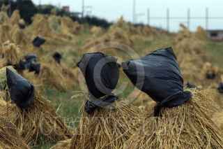 TLALPAN, CIUDAD DE MÉXICO, 11ENERO2021.- Sembradío de manojos de avena que tienen cubierto la parte superior, donde se concentra la semilla, con una bolsa negra, esto se hace para evitar que se “queme” la semilla con las heladas. La imagen en la comunidad de Parres. FOTO: MARGARITO PÉREZ RETANA/CUARTOSCURO.COM