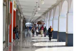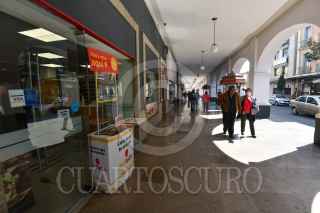 TOLUCA, ESTADO DE MÉXICO, 11ENERO2021.- El semáforo Rojo por la contingencia por COVID-19 en el Estado de México continúa, los negocios permanecen cerrados aunque ya fueron reabiertos los Portales de Toluca, los cuales tenían vallas y filtros sanitarios para poder ingresar, hoy las personas pudieron recorrerlos sin singuen obstáculo. FOTO: CRISANTA ESPINOSA AGUILAR /CUARTOSCURO.COM