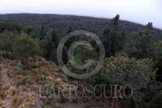 TLALPAN, CIUDAD DE MÉXICO, 11ENERO2021.- La neblina del amanecer cubre el bosque que rodea el cono del volcán inactivo El Pelado de 3600 msnm cerca de la comunidad de Parres. FOTO: MARGARITO PÉREZ RETANA/CUARTOSCURO.COM