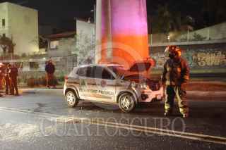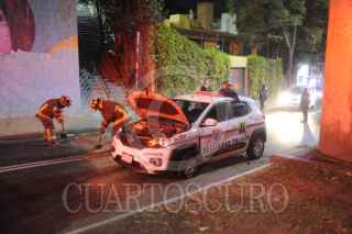 Ciudad de México, 12 enero 2021. Una patrulla de seguridad privada volcó al perder el control de la unidad en una curva, sobre avenida Luis Cabrera a la altura de la calle Veracruz en la colonia San Jerónimo Aculco en alcaldía de Magdalena Contreras. Foto: Luis Carbayo/cuartoscuro.com