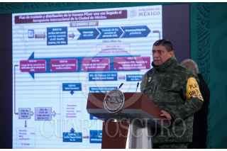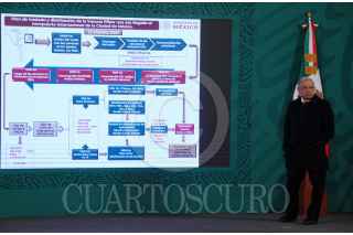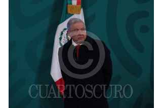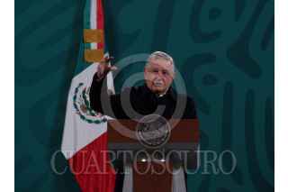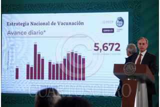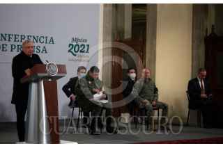 CIUDAD DE MÉXICO, 12ENERO2021.- Andrés Manuel López Obrador, presidente de México acompañado de Hugo López-Gatell Ramírez, subsecretario de Prevención y Promoción de la Salud; Zoé Robledo Aburto, director general del IMSS; Luis Cresencio Sandoval González, secretario de la Defensa Nacional (SEDENA) y José Rafael Ojeda Durán, secretario de la Marina, durante la conferencia de prensa matutina en Palacio Nacional donde se destacó el tema y logistica de la llegada de las 400,000 mil vacunas contra COVID-19. FOTO: ANDREA MURCIA / CUARTOSCURO.COM