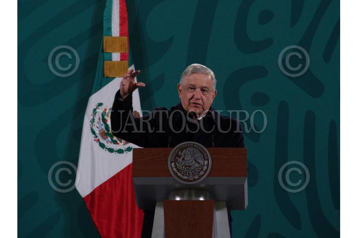 CIUDAD DE MÉXICO, 12ENERO2021.- Andrés Manuel López Obrador, presidente de México acompañado de Hugo López-Gatell Ramírez, subsecretario de Prevención y Promoción de la Salud; Zoé Robledo Aburto, director general del IMSS; Luis Cresencio Sandoval González, secretario de la Defensa Nacional (SEDENA) y José Rafael Ojeda Durán, secretario de la Marina, durante la conferencia de prensa matutina en Palacio Nacional donde se destacó el tema y logistica de la llegada de las 400,000 mil vacunas contra COVID-19. FOTO: ANDREA MURCIA / CUARTOSCURO.COM