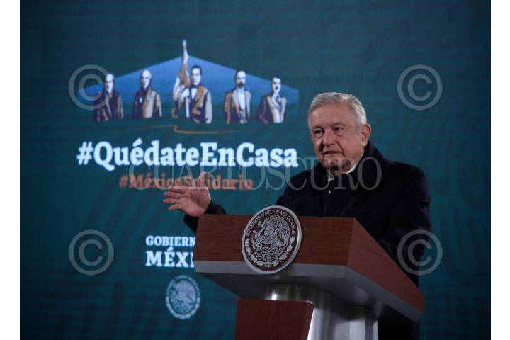 CIUDAD DE MÉXICO, 12ENERO2021.- Andrés Manuel López Obrador, presidente de México acompañado de Hugo López-Gatell Ramírez, subsecretario de Prevención y Promoción de la Salud; Zoé Robledo Aburto, director general del IMSS; Luis Cresencio Sandoval González, secretario de la Defensa Nacional (SEDENA) y José Rafael Ojeda Durán, secretario de la Marina, durante la conferencia de prensa matutina en Palacio Nacional donde se destacó el tema y logistica de la llegada de las 400,000 mil vacunas contra COVID-19. FOTO: ANDREA MURCIA / CUARTOSCURO.COM