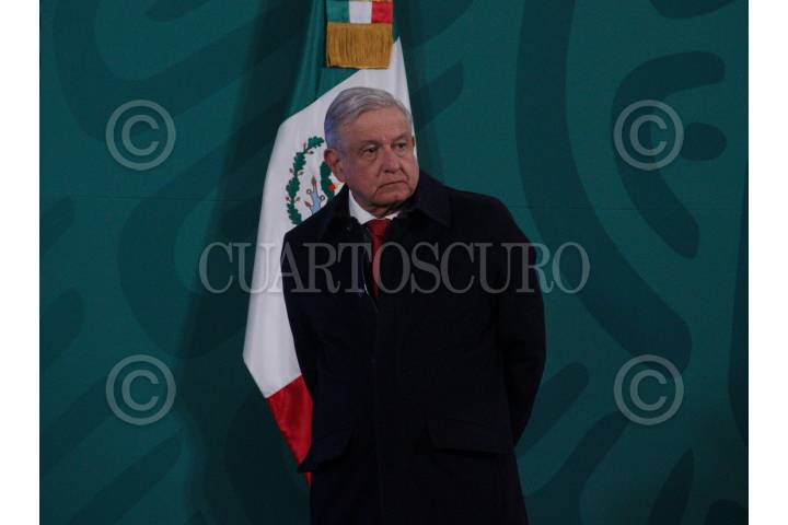 CIUDAD DE MÉXICO, 12ENERO2021.- Andrés Manuel López Obrador, presidente de México acompañado de Hugo López-Gatell Ramírez, subsecretario de Prevención y Promoción de la Salud; Zoé Robledo Aburto, director general del IMSS; Luis Cresencio Sandoval González, secretario de la Defensa Nacional (SEDENA) y José Rafael Ojeda Durán, secretario de la Marina, durante la conferencia de prensa matutina en Palacio Nacional donde se destacó el tema y logistica de la llegada de las 400,000 mil vacunas contra COVID-19. FOTO: ANDREA MURCIA / CUARTOSCURO.COM