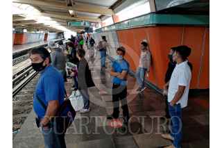 CIUDAD DE MÉXICO, 12ENERO2021.- La línea 4 del Sistema de Transporte Colectivo Metro que corre de Santa Anita a Martín Carrera reanudó actividades las primeras horas de este martes, junto a las líneas 5 y 6. Los usuarios de este transporte que utilicen este transporte han esperado la llegada del tren de 9 minutos por estación. FOTO: GRACIELA LÓPEZ /CUARTOSCURO.COM