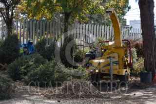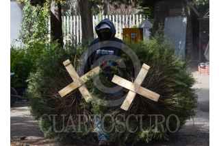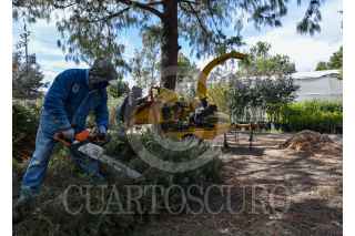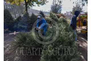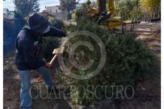 METEPEC, ESTADO DE MÉXICO, 12ENERO2021.- El vivero municipal de Metepec realiza el tratamiento de los árboles navideños, retirando los clavos y crucetas para poderlos posteriormente triturar y elaborar compotas con ellos, fueron implementados 8 centros de acopio en el municipio que estarán disponibles hasta el 7 de febrero, la composta será utilizada en espacios públicos del municipio. FOTO: CRISANTA ESPINOSA AGUILAR /CUARTOSCURO.COM