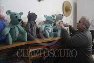 CIUDAD JUÁREZ, CHIHUAHUA, 12ENERO2021.- Con prendas de vestir de personas que murieron por Covid-19, Eréndira Guerrero, labora ositos de peluche para familiares que esperan que de esta forma poder conservar algo de los que ya partieron. Para su creadora en una forma de canalizar el duelo y el dolor de sus perdidas, además de tratar de llevar parte la esencia de su ser querido, ya que muchos de ellos no se pudieron despedir físicamente debido a los protocolos sanitarios que se aplican cuando alguien fallece de Coronavirus. FOTO: NACHO RUIZ/CUARTOSCURO.COM
