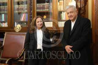 CIUDAD DE MÉXICO, 12ENERO2021.- Sanjuana Martínez, directora de la Agencia Notimex (la cual vive actualmente una huelga) , dio a conocer a través de sus redes que se reunió con Andrés Manuel López Obrador, Presidente de México, en Palacio Nacional. FOTO: ESPECIAL/CUARTOSCURO.COM