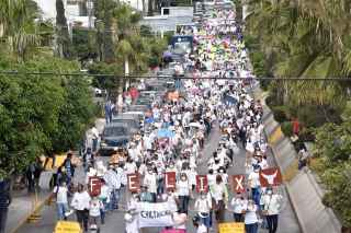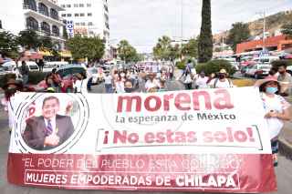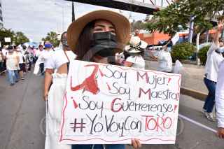 CHILPANCINGO, GUERRERO, 12ENERO2021.- Cerca de dos mil mujeres provenientes de las siete regiones del Estado marcharon este día en Chilpancingo en defensa del candidato de Morena a la gubernatura de Guerrero, Félix Salgado Macedonio, quien es acusado de violación. Durante el trayecto se corearon consignas a favor de Salgado Macedonio «Félix las mujeres están contigo», «aunque no les guste Félix ganará», así como pancartas con leyendas similares. Se pudieron observar mantas de personas provenientes de La Montaña, Zihuatanejo, Iguala, Tierra Caliente, Acapulco, así como de Chilpancingo, la mayoría vistiendo de blanco. Cerca de la avanzada, se pudo observar a la diputada local, Erika Valencia, quien declaró que existe una guerra sucia en contra del candidato de Morena a la gubernatura de Guerrero por ser el mejor posicionado en las encuestas. Pidió a los grupos feministas respetar el proceso electoral, pues en días pasados se han manifestado de diferentes maneras acusando de «violador» a Félix Salgado, luego de filtrarse a medios de comunicación carpetas de investigación de años pasado. FOTO: DASSAEV TÉLLEZ ADAME/CUARTOSCURO.COM