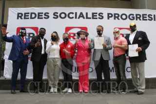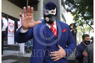 CIUDAD DE MÉXICO, 13ENERO2021.- Blue Demon Jr, Marina "La Barbie Juárez", Malillany Marín, Alfredo Adame, Carístico , Tinieblas y Héctor Hernández, acudieron al pre registro interno de candidatos del partido Redes Sociales Progresistas en la Ciudad, esto ante ante la Comisión Nacional de Procesos Internos. FOTO: ROGELIO MORALES /CUARTOSCURO.COM