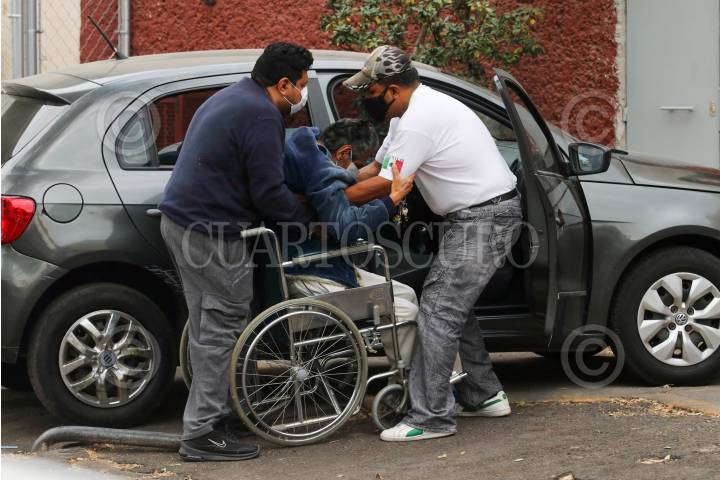 CIUDAD DE MÉXICO, 13ENERO2021.- Paramédicos realizaron un traslado de un paciente con Covid-19 en el Triage Respiratorio del Hospital General la Villa; durante el día pacientes con síntomas de Covid-19 acompañados de sus familiares fueron rechazados para ser internados en este hospital. Según los informes aún hay camas para atender a pacientes con esta enfermedad. FOTO: GRACIELA LÓPEZ / CUARTOSCURO.COM