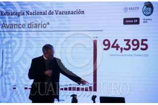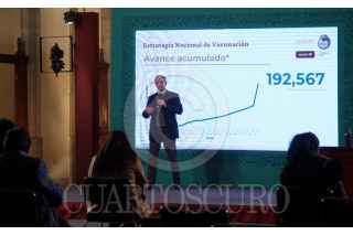 CIUDAD DE MÉXICO, 13ENERO2021.- Hugo López-Gatell, subsecretario de Prevención y Promoción de la Salud y Ricardo Cortés Alcalá, director de prevención de la Salud, durante la conferencia informe COVID-19, que se lleva a cabo en Palacio Nacional. Se destacó el tema del avance de la vacunación y su llegada en todos los estados de la República. FOTO: ANDREA MURCIA /CUARTOSCURO.COM