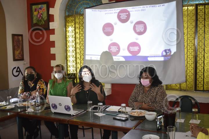 CHILPANCINGO, GUERRERO, 13ENERO2021.- La presidenta de la Red para el Avance Político de las Mujeres Guerrerenses, Muriel Salinas Díaz, declaró que el senador con licencia, Félix Salgado Macedonio, podría no concretar su registro como candidato de Morena a la gubernatura de Guerrero, puesto que primero debe presentar su declaración «3 de 3 contra la violencia de género». En conferencia de prensa en la capital, Salinas Díaz acompañada de integrantes de la red informó que la organización, en conjunto con Equipos Feministas A. C., elaboró un proyecto que fue seleccionado por el Instituto Nacional Electoral (INE) para recibir recursos con los que se realizarán actividades en Guerrero, con el objetivo de identificar, prevenir y sancionar la violencia política en razón de género, así como darle acompañamiento a las víctimas, en el marco del proceso electoral. En ese sentido, se le preguntó a Salinas Díaz sobre el caso de Salgado Macedonio, quien está acusado como violador sexual, y dijo que una vez que el senador con licencia presente su declaración, se le podría negar su registro. La presidenta de la red resaltó que el proceso judicial en contra de Salgado Macedonio se interrumpió de manera ilegal, «para nosotras el tema central es la víctima»; mientras que la Fiscalía General del Estado deberá determinar su responsabilidad y proceder como corresponde, o no. FOTO: DASSAEV TÉLLEZ ADAME /CUARTOSCURO.COM