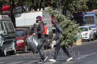 CiuDAD DE MÉXICO, 14ENERO2021.- Un par de hombres llevan su árbol navideño al centro de reciclaje del Parque de los Venados. FOTO: MOISÉS PABLO/CUARTOSCURO.COM