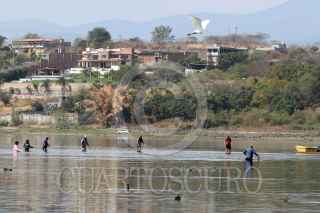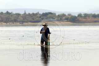 MIACATLÁN, MORELOS, 14ENERO2021.- En la orilla de la laguna del Rodeo, se puede encontrar a personas que con redes pescan mojarras, aves acuáticas y hasta un golfista practicando su swing. FOTO: MARGARITO PÉREZ RETANA /CUARTOSCURO.COM