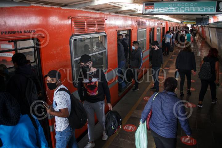 CIUDAD DE MÉXICO, 14ENERO2021.- El pasado sábado se incendió las oficinas centrales del Sistema de Transporte Colectivo Metro (STC) lo que ocasionó la suspensión de 6 líneas del mismo. Hasta la fecha ya se reactivaron las líneas 4, 5 y 6. Usuarios se quejan de la larga espera de al menos 10 minutos que lo que provoca aglomeraciones en los andenes. FOTO: ANDREA MURCIA /CUARTOSCURO.COM