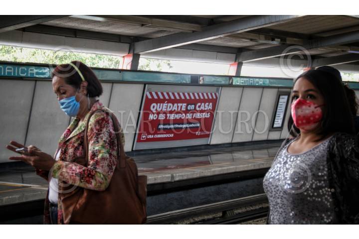 CIUDAD DE MÉXICO, 14ENERO2021.- El pasado sábado se incendió las oficinas centrales del Sistema de Transporte Colectivo Metro (STC) lo que ocasionó la suspensión de 6 líneas del mismo. Hasta la fecha ya se reactivaron las líneas 4, 5 y 6. Usuarios se quejan de la larga espera de al menos 10 minutos que lo que provoca aglomeraciones en los andenes. FOTO: ANDREA MURCIA /CUARTOSCURO.COM