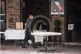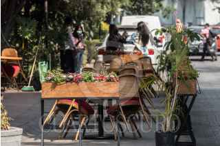 CIUDAD DE MÉXICO, 15ENERO2021.- Restaurantes de la capital alistan preparativos para brindar servicio en sus instalaciones el próximo lunes 18 de enero mientras prevalece el semáforo rojo por covid-19, luego de que se llegara a un acuerdo con autoridades en el que se estableció que sólo se podrá brindar servicio a aquellos que cuenten con terrazas o mesas al aire libre, y cumpliendo las medidas de sanidad correspondientes. FOTO: MARIO JASSO/CUARTOSCURO.COM