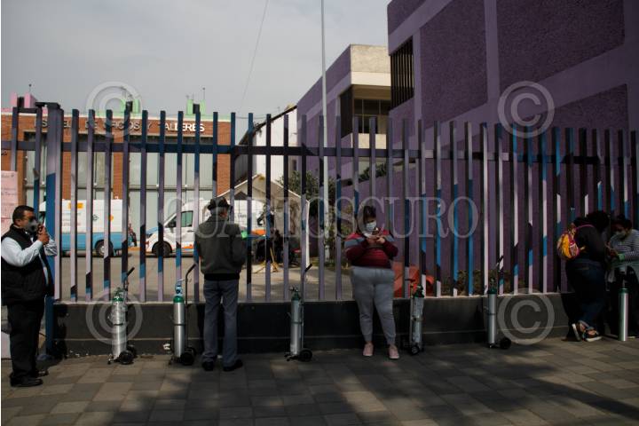 CIUDAD DE MÉXICO, 15ENERO2021.- Familiares de personas con COVID-19 positivo atendidas en casa acuden desde temprana hora al TRIAGE COVID-19 de la delegación Gustavo A. Madero (GAM) para llenar de manera gratuita sus tanques de oxígeno. Este apoyo se realiza en conjunto con el Gobierno de la Ciudad y la alcaldía GAM. FOTO: ANDREA MURCIA /CUARTOSCURO.COM