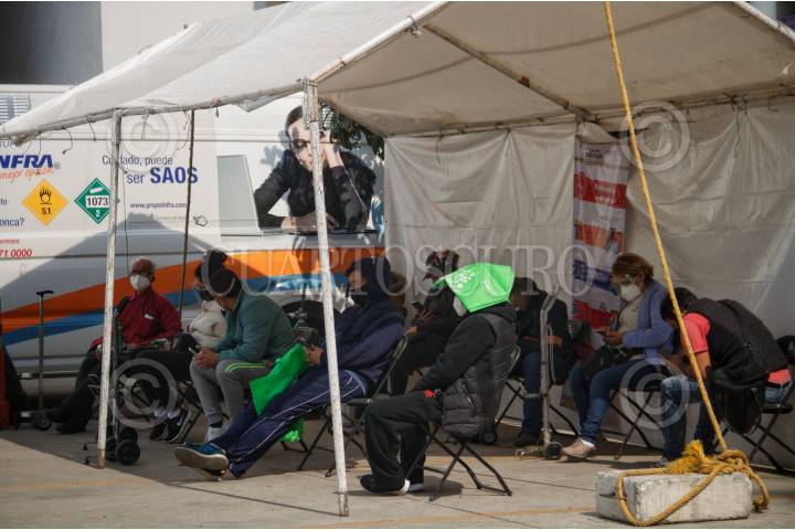 CIUDAD DE MÉXICO, 15ENERO2021.- Familiares de personas con COVID-19 positivo atendidas en casa acuden desde temprana hora al TRIAGE COVID-19 de la delegación Gustavo A. Madero (GAM) para llenar de manera gratuita sus tanques de oxígeno. Este apoyo se realiza en conjunto con el Gobierno de la Ciudad y la alcaldía GAM. FOTO: ANDREA MURCIA /CUARTOSCURO.COM