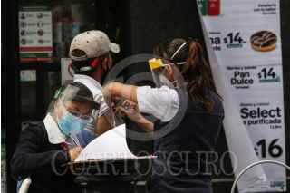CIUDAD DE MÉXICO, 16ENERO2021.- Pese a la pandemia por COVID-19, la alcaldía de Iztapalapa mantiene la campaña de vacunación en la demarcación. Enfermeras recorren el centro de la alcaldía para vacunar a vecinos en cualquier lugar en el que se encuentren FOTO: ROGELIO MORALES /CUARTOSCURO.COM