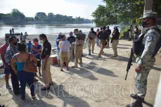 SUCHIATE CHIAPAS 16ENERO2021.- Elementos del Ejército Mexicano y del Instituto Nacional de Migración, regresaron a los márgenes del Río Suchiate, a las personas que intentan ingresar sin documentación a nuestro país, en este sentido se mantiene el cerco de seguridad para impedir el acceso. Cabe mencionar que el río que divide México de Guatemala disminuyó su caudal lo que permite a las personas atravesarlo caminando. FOTO: DAMIÁN SÁNCHEZ /CUARTOSCURO.COM
