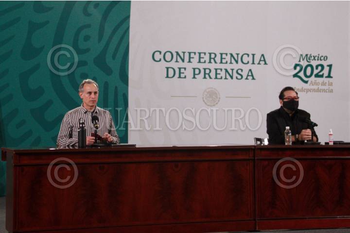 CIUDAD DE MÉXICO, 16ENERO2021. - Hugo López-Gatell Ramírez, subsecretario de Prevención y Promoción de la Salud y José Luis Alomía Zegarra, director general de epidemiología durante el informe diario de COVID-19, donde se informó sobre el avance d el jornada de vacunación contra el virus. FOTO: ANDREA MURCIA /CUARTOSCURO.COM