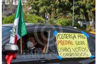 TOLUCA, ESTADO DE MÉXICO, 17ENERO2021.- Integrantes del Frente Nacional Ciudadano Anti Amlo (FRENA) se reunieron en la Glorieta de El Águila y realizar una caravana en contra del alza al impuesto predial, le piden a la población que postergue el pago ya que esté presuntamente será utilizado para las campañas. FOTO: CRISANTA ESPINOSA AGUILAR /CUARTOSCURO.COM