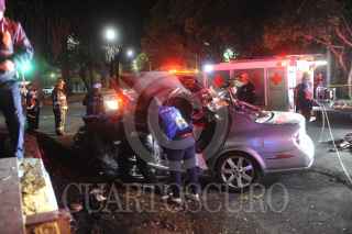 Ciudad de México, 18 enero 2021. Un hombre de aproximadamente 40 años permaneció prensado entre los fierros de su vehículo Máxima que conducía, luego de impactar en la glorieta de Palmas a la altura de Sierra Aconcagua en la colonia Lomas de Chapultepec el alcaldía de Miguel Hidalgo. Foto: Luis Carbayo/cuartoscuro.com