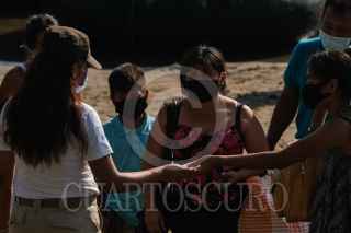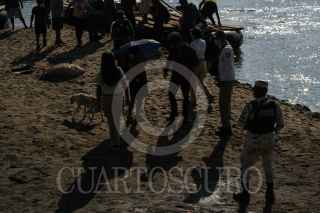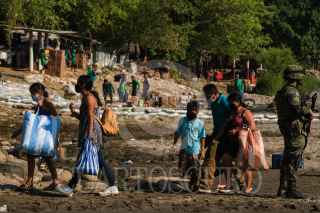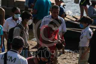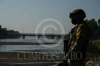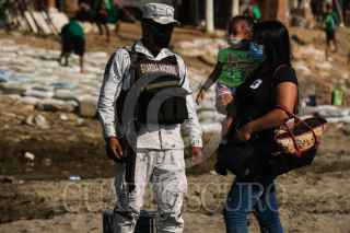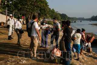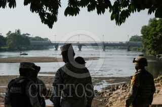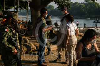 CIUDAD HIDALGO, CHIAPAS, 18ENERO2021.- Elelemtos del Instituto Nacional de Migración, Ejercito, Marina y Guardia Nacional, mantienen operativos de resguardo de la frontera sur del territorio mexicano. A los comerciantes que pasan a diario por este río les solicitan la Tarjeta de Visitante Regional la cual le permite a los guatemaltecos ingresar al país para cuestiones de comercio, unicamente en los municipios fronterizos. De no contar con este documento las personas tienen que regresar y entrar por el Puente Fronterizo Rodolfo Robles para iniciar con el tramite de dicha tarjeta. FOTO: ISABEL MATEOS /CUARTOSCURO.COM