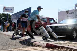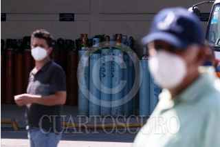 JIUTEPEC, MORELOS, 18ENERO2021.- Decenas de personas se forman en la sucursal de la empresa Infra para llenar sus tanques de oxígeno a fin de atender a sus familiares enfermos de Covid-19. De todo el estado, y hasta de otros, llegan para comprar oxígeno; algunas personas han viajado desde Jolalpan, Puebla, para llenar sus tanques. FOTO: MARGARITO PÉREZ RETANA /CUARTOSCURO.COM